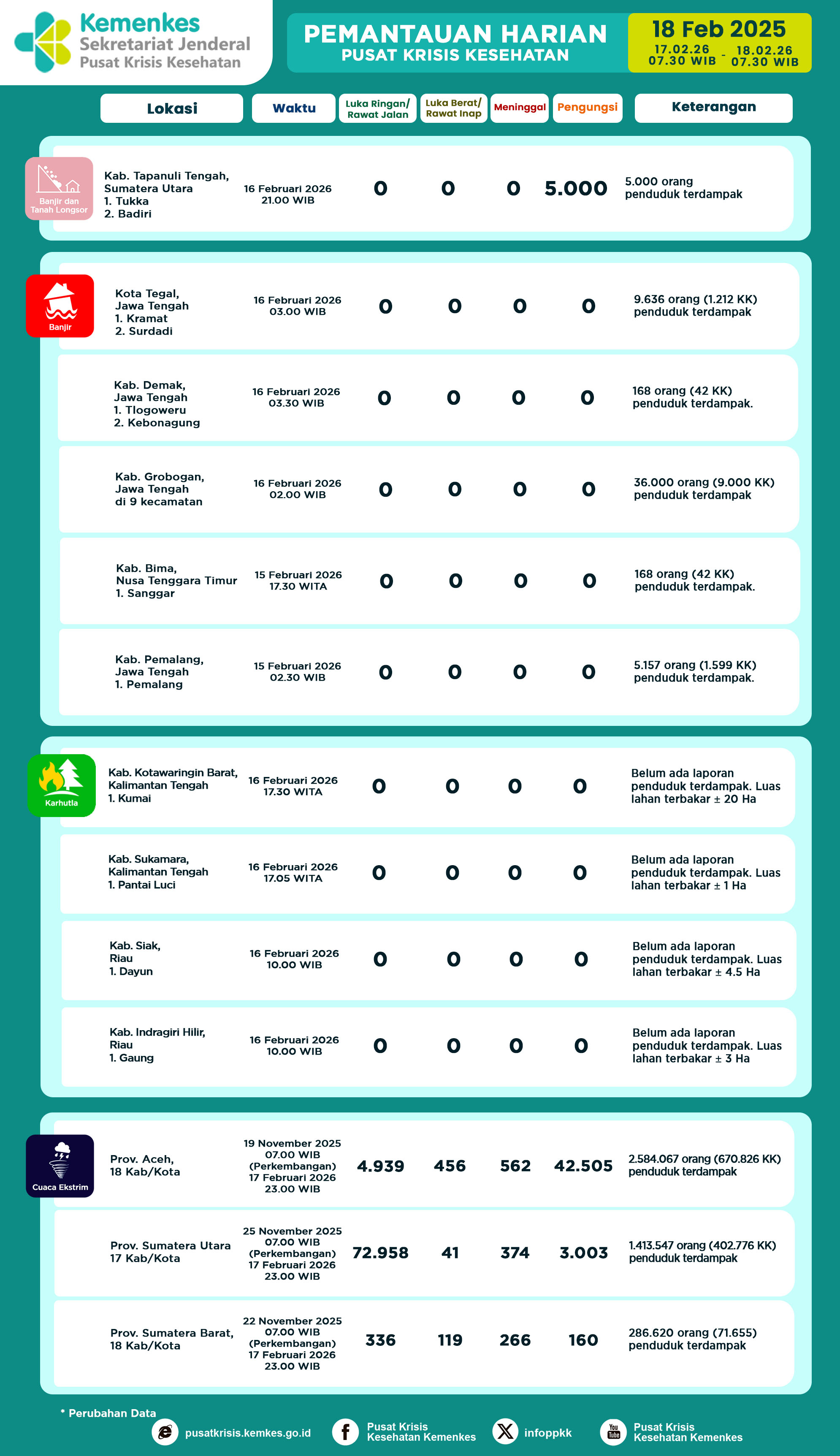 DETAILInfografis Pemantauan Harian Pusat Krisis Kesehatan 16 Februari 2026