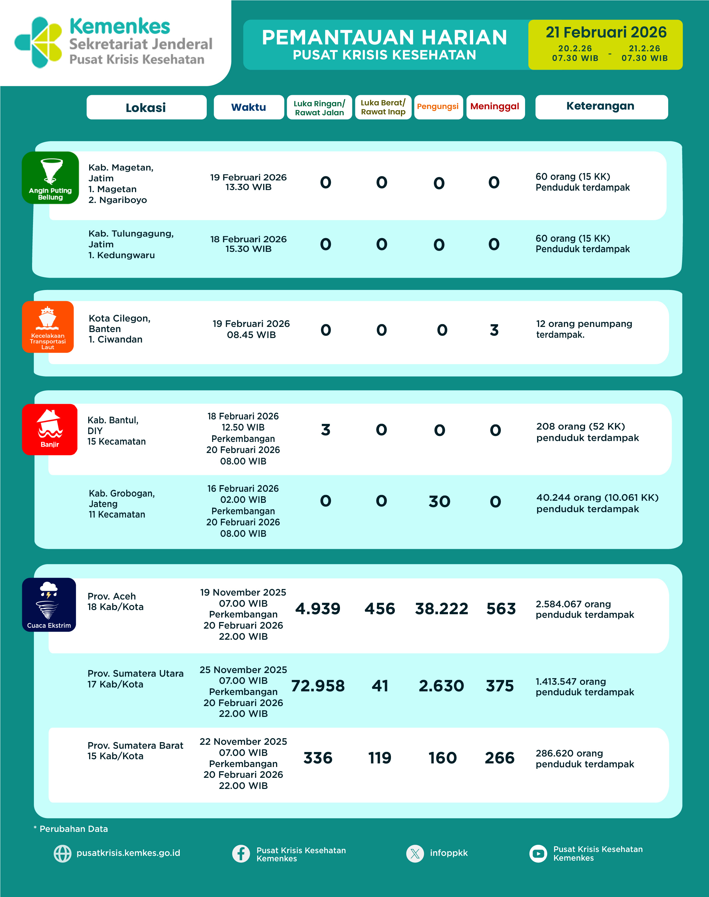 Infografis Pemantauan Harian Pusat Krisis Kesehatan 21 Februari 2026