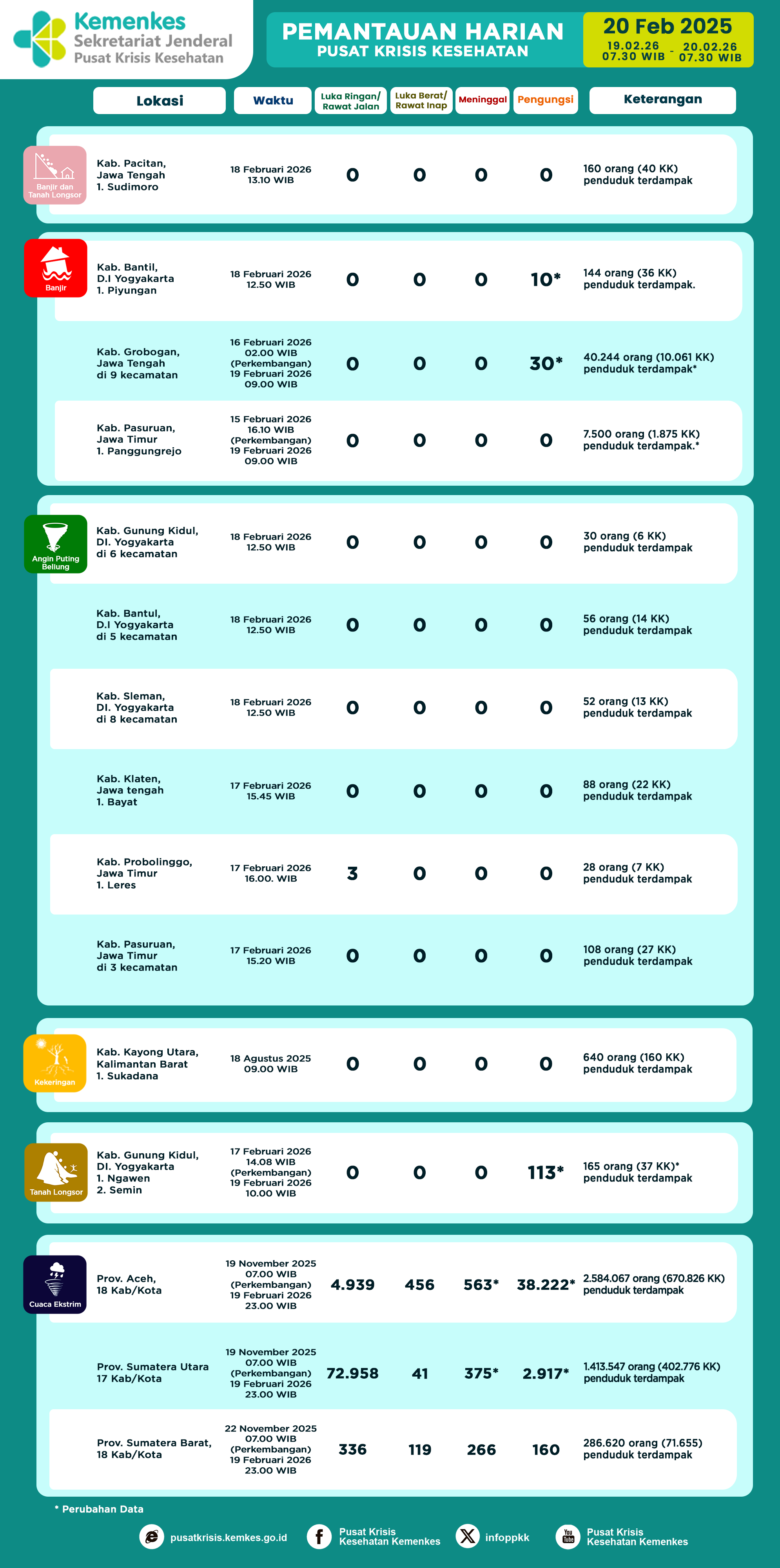 DETAILInfografis Pemantauan Harian Pusat Krisis Kesehatan 20 Februari 2026