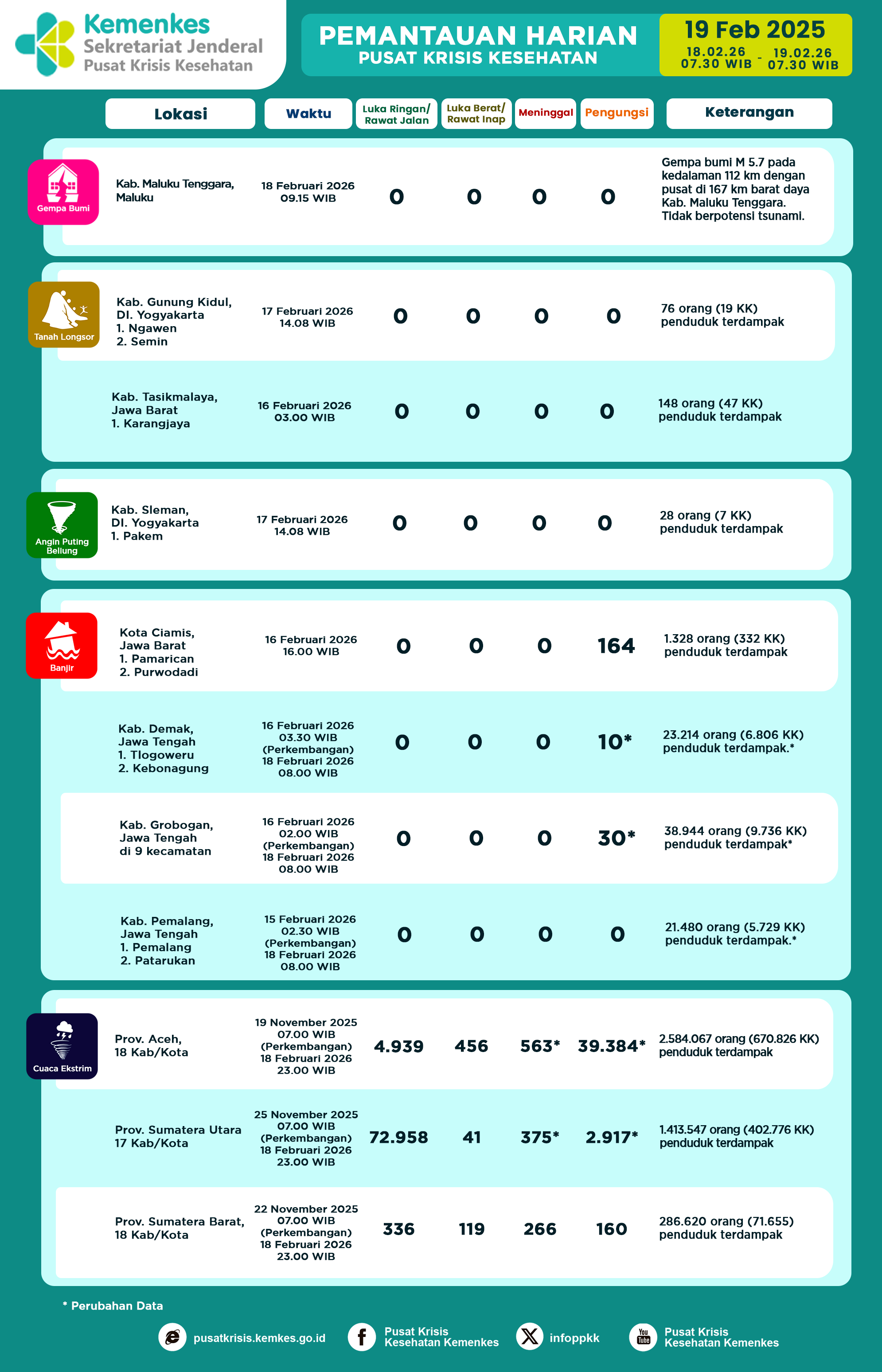 DETAILInfografis Pemantauan Harian Pusat Krisis Kesehatan 19 Februari 2026