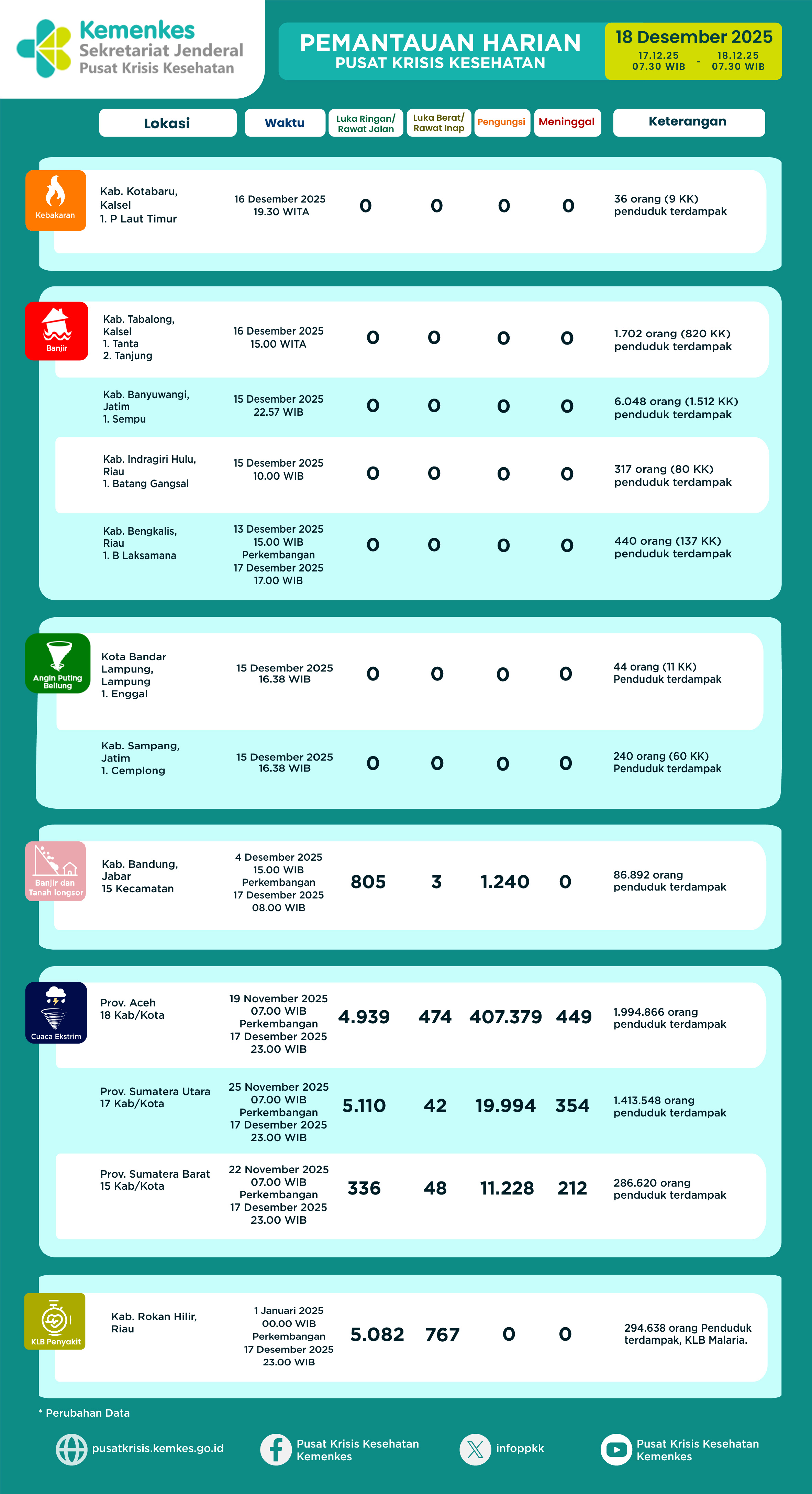 Di sini anda dapat melihat dan mengunduh laporan Pemantauan Harian Pusat Krisis Kesehatan Kementerian Kesehatan Tanggal 28 September 2025 pukul 07.30 WIB hingga 29 September 2025 pukul 07.30 WIB
