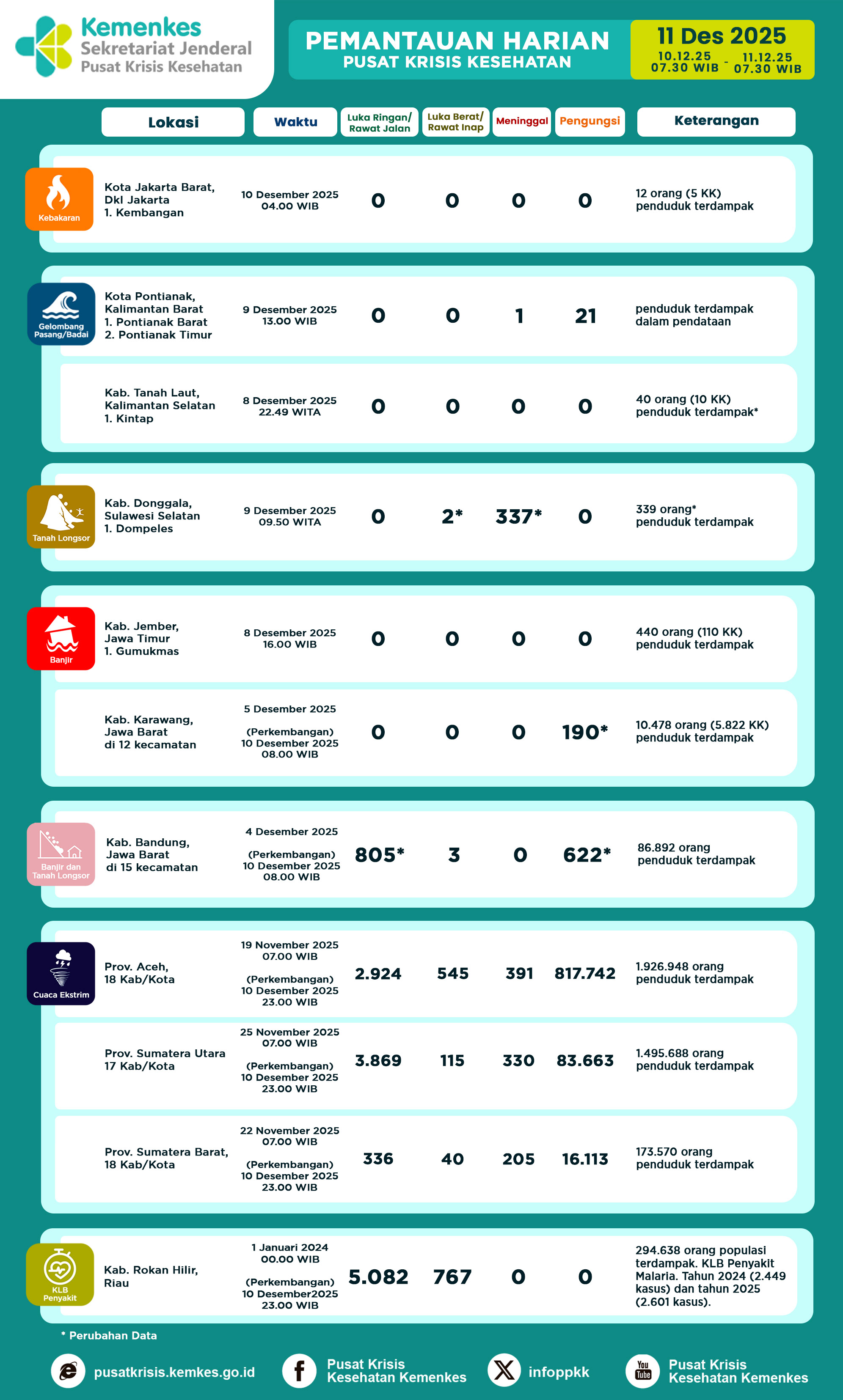 Di sini anda dapat melihat dan mengunduh laporan Pemantauan Harian Pusat Krisis Kesehatan Kementerian Kesehatan Tangga 29 Juni 2025 pukul 07.30 WIB hingga 30 Juni 2025 pukul 07.30 WIB